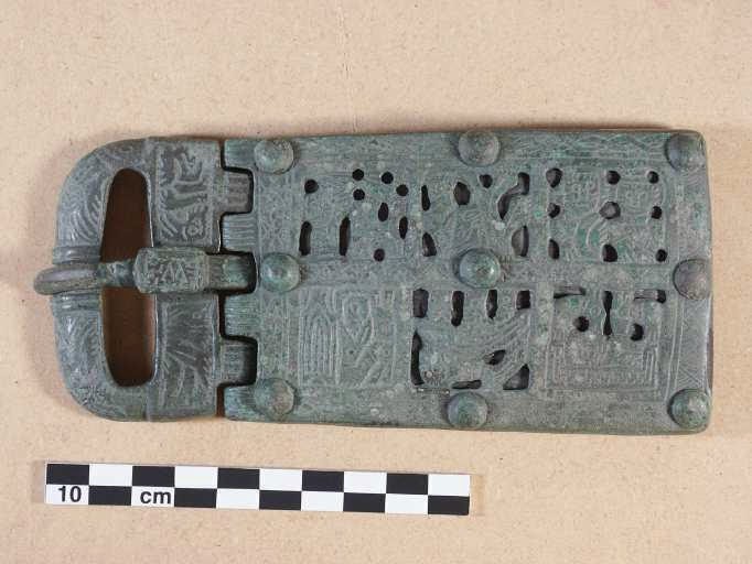 (áreas ambas geográficamente muy cercanas a la primera, por cierto). Y de esa zona burgundia proceden también los broches de cinturón de bronce denominados, por razones obvias, burgundios. Broches que tienen una serie de características propias, entre las que destacan unos bonitos apéndices de articulación estriados (¿nos suenan?) y placas caladas con motivos figurados en muchos de los casos, al igual que ocurre con sus "primos" de hueso, asta o marfil. Incluso, en algunas ocasiones, tanto las piezas metálicas como las realizadas en "materia dura animal" siguen exactamente el mismo patrón morfológico y decorativo, lo que supone uno de los principales elementos para situar en la región burgundia, si no el lugar de origen de las segundas, al menos sí una de las principales zonas en las que se produjeron (y llevaron puestos) ese tipo de broches.